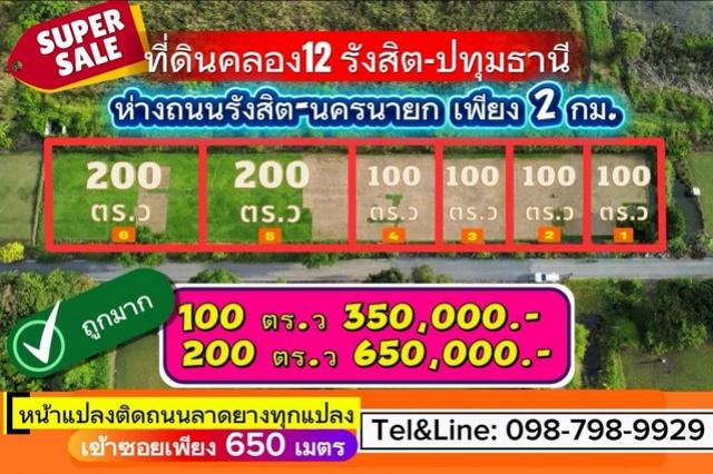 ชื่อโครงการ : ที่ดินคลอง12 ใกล้กับ รังสิต-นครนายกเพียง 2 กม.
