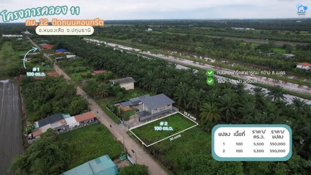ที่ตั้ง : -ขายที่ดินคลอง 11 ขนาดแปลงละ 100 ตารางวา อ.หนองเสือ จ.ปทุมธานี ที่ตั้ง : อ.หนองเสือ จ.ปทุมธานี ขนาดแปลงละ 100 ตารางวา รายละเอียดที่ดิน • มีเพียง 2 แปลงเท่านั้น • โฉนดครุฑแดง พร้อมโอนทันที จุดเด่นที่ทำให้ตัดสินใจง่าย ✅ ติดถนนคอนกรีตกว้าง 8 เมตร รถเข้า ใกล้กับ -