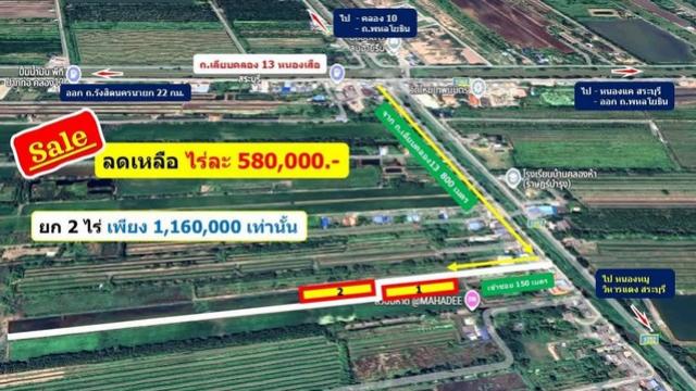 ที่ตั้ง : ที่ดิน คลอง13 หนองเสือ ใกล้กับ รร.บ้านคลองห้า(ราษฎร์บำรุง) 500 ม.