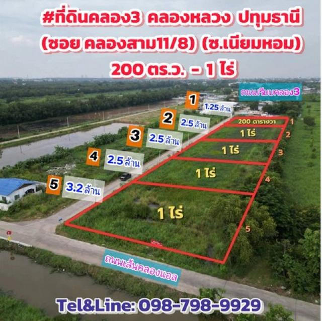 ที่ตั้ง : ที่ดินคลอง3 ใกล้กับ ห่างถนนคลองหลวง 5 กม.